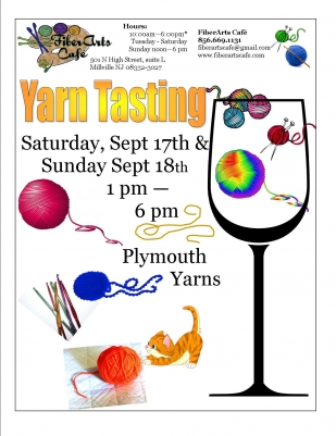 FiberArts is having our annual Yarn Tasting! Saturday September 17th & Sunday September 18th from 1 pm to 6 pm. We will be tasting some the yarns made by Plymouth Yarns. Wools, wool-blends, cottons, nice acrylics and more. Finished items in the yarns available to see & free patterns.