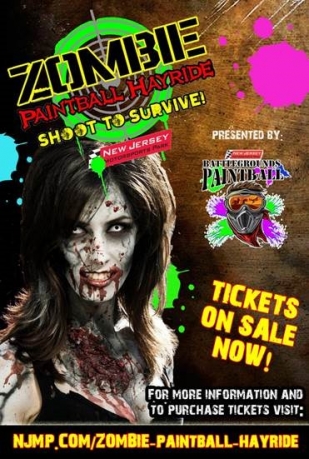 Zombie Paintball Hayride at NJ Motorsports Park MILLVILLE, N.J. The apocalypse has arrived at Battlegrounds Paintball and the undead are taking over! After the success of last years debut of Zombie Paintball, NJMP officials have announced its return with more activities to please zombie lovers (or haters) of all ages. The woods at NJMP are infected with blood thirsty zombies; they need your help to put the zombies back in their graves! Each night Zombie hunters will head into the woods in ZRVs (Zombie Response Vehicles) which hold up to ten people at a time. Hordes of zombies will attack, but they cannot shoot back. You have the advantage! In addition to Zombie Paintball the park is offering Jersey Devil Story telling by the fire pit, the Finish Line Pub will be open each evening until 10pm with $5 burgers, $2 draft beers and $1 soft drinks. Each evening at 8:30 treasure seekers can venture into the haunted woods for a scavenger hunt, with prizes such as a $100 NJMP gift card, coupons for free stuff and lots of other cool surprises. Flash lights are recommended. Also new this year will be Kart Drag Racing, go head to head with another driver to win bragging rights! All activities run Friday and Saturday nights October 2-31st. and will be located in the Finish Line Pub and Battlegrounds Paintball areas. Some activities will require an additional fee. Zombie paintball tickets are on sale now at NJMP.com. About New Jersey Motorsports Park: Sitting on more than 500 acres in Millville, N.J., New Jersey Motorsports Park is the premier motorsports entertainment complex in the Northeast. NJMP is conveniently located near Philadelphia and New York City, offering diverse and dynamic attractions both on and off-track. The park includes three world-class road courses, Thunderbolt, Lightning, and Tempest Raceway, a motorsports country club membership program, one of the top outdoor karting complexes in the U.S., 10 acres of paintball fields, concert and festival space, overnight accommodations, and real estate development opportunities. Also on the property, a clubhouse features meeting space, bar/restaurant and built-in pool. 856-327-7209 FB: 856-327-8000 *Subject to change