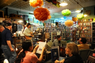 There is a full-service coffee bar, cold drinks, hot soups and sweets to enjoy with the great music. Of course there are plenty of books to choose!